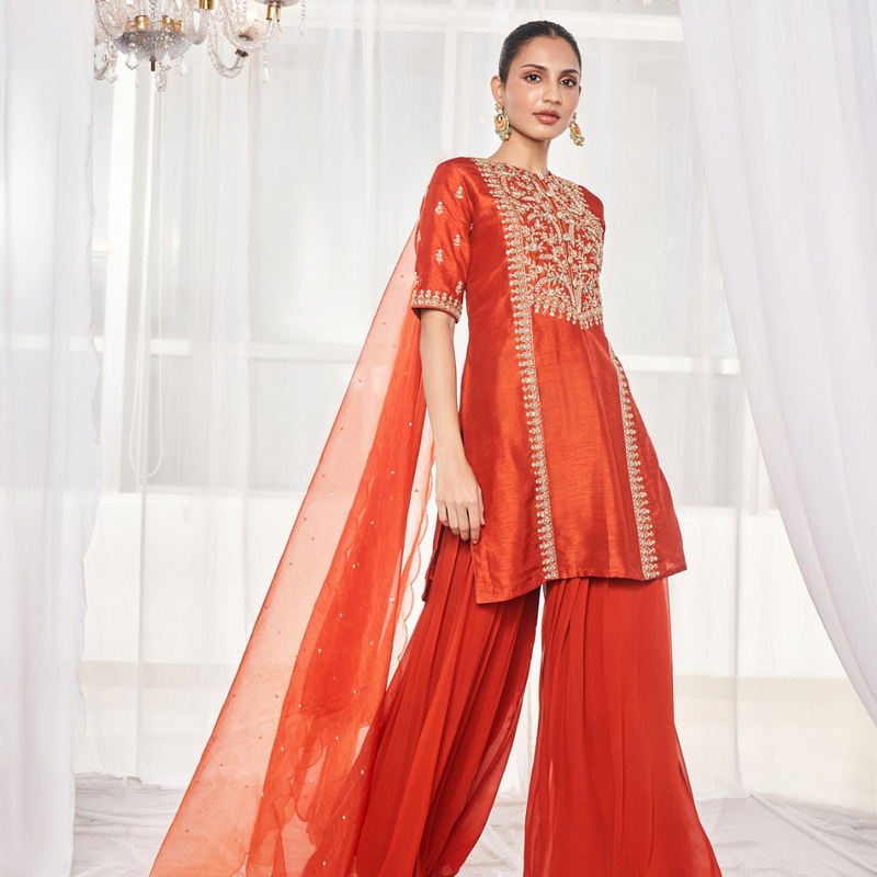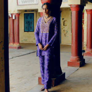 AASTHA SOOD - Green silk tissue Lehenga with Colorful Geometric Embroidery