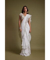 PRITIKA VORA - White layered saree with cap sleeve blouse - XS