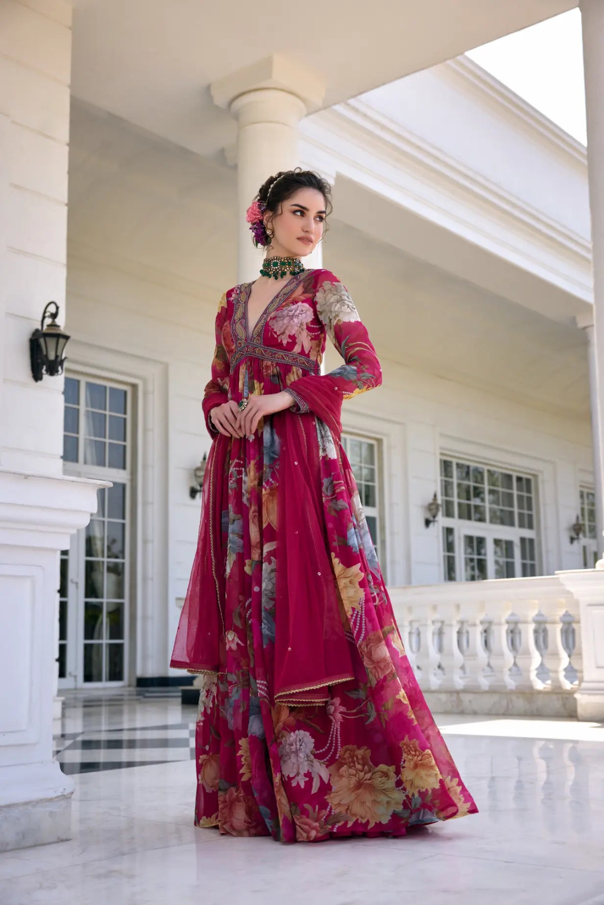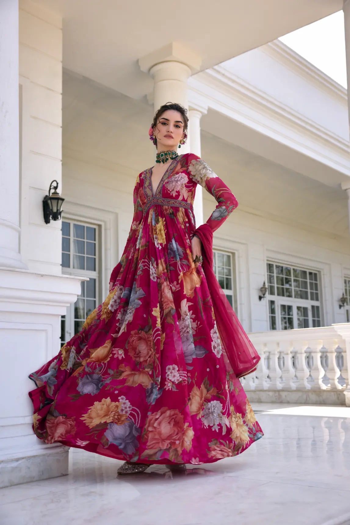 KALISTA - Kiara Anarkali Set Fuchsia - XS