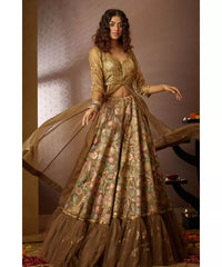 Stand out in the crowd with this uniquely designed Anarkali Lehenga set.