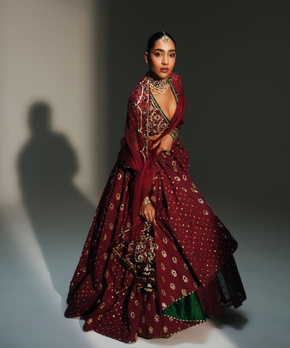 (ORDER SINDORI RED EMBROIDERED LEHENGA SET  SEPERATELY WITH THIS OUTFIT)