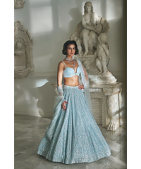 SEEMA GUJRAL- Powder Blue Sequin Lehenga Set