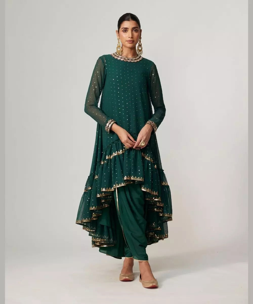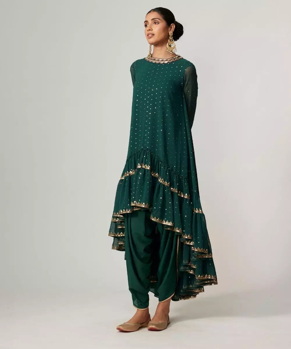 VVANI VATS - Jade green Dhoti Kurta Set - XS