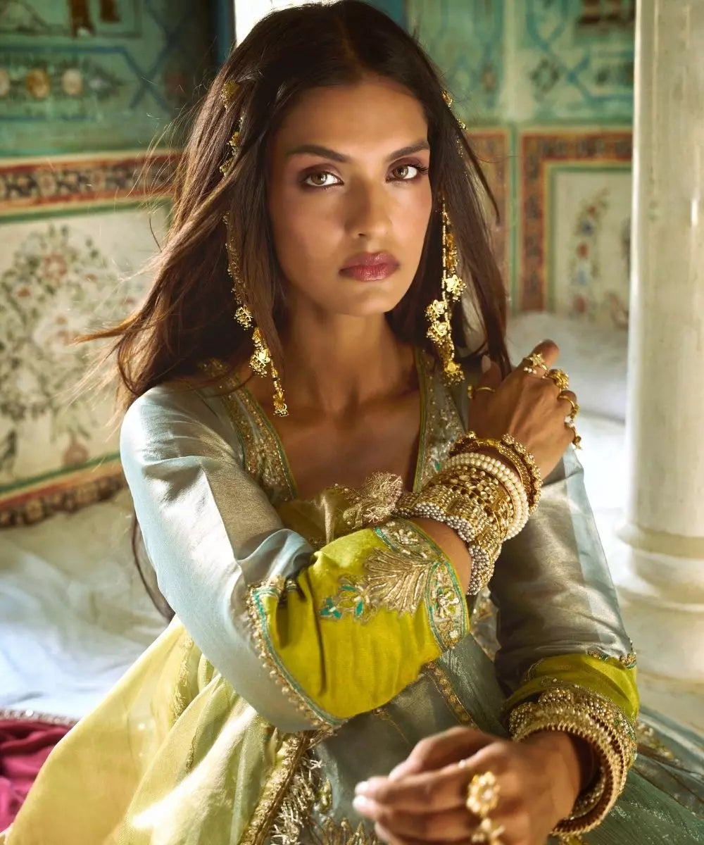 ADITI GUPTA - Moonlight Blue pure tissue Jacket with crushed Silk Skirt Set with tissue dupatta - XS