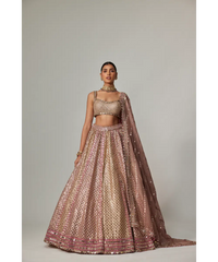 COLOR - BLOUSE-DEEP BEIGE. LEHENGA-MUD MAUVE, DEEP BEIGE. DUPATTA-DEEP BEIGE.