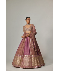 DARK BLUSH OUTING ONLY IN BLOUSE. LEHENGA BELT SEAM PATTI BORDER TO BE IN DARK BLUSH.