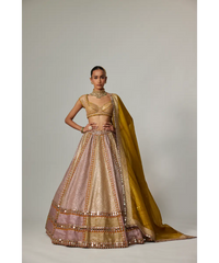 COLOR - BLOUSE-MUSTARD, LEHENGA-MUSTARD-GREEN, MUD MAUVE DUPATTA-GREEN