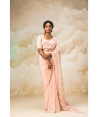 PEARL EMBROIDERED TONE ON TONE SAREE WITH DETAILED HEAVY VELVET PATCH WORK PALLU PAIRED WITH HEAVY VELVET EMBROIDERED BLOUSE.