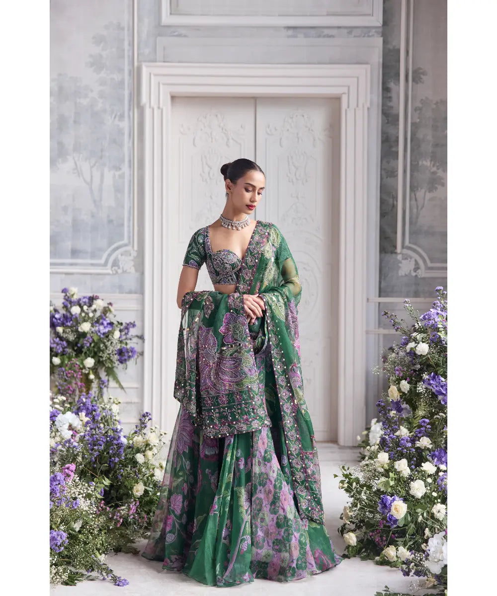 EMBROIDERED BLOUSE AND DUPATTA PAIRED WITH FLORAL LEHENGA