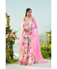 MANI BHATIYA - Floral pink Printed Peplum & Gharara set