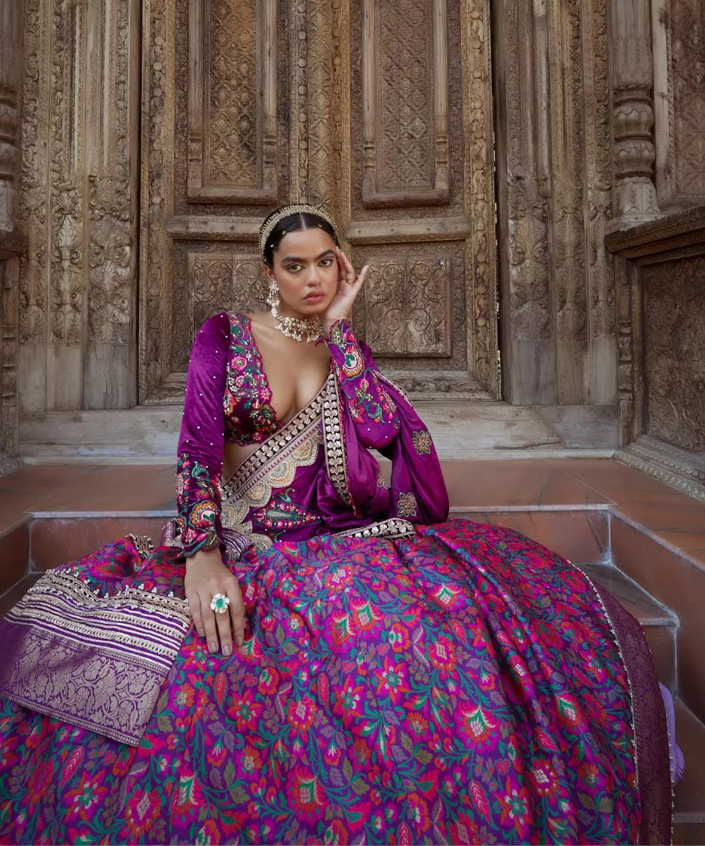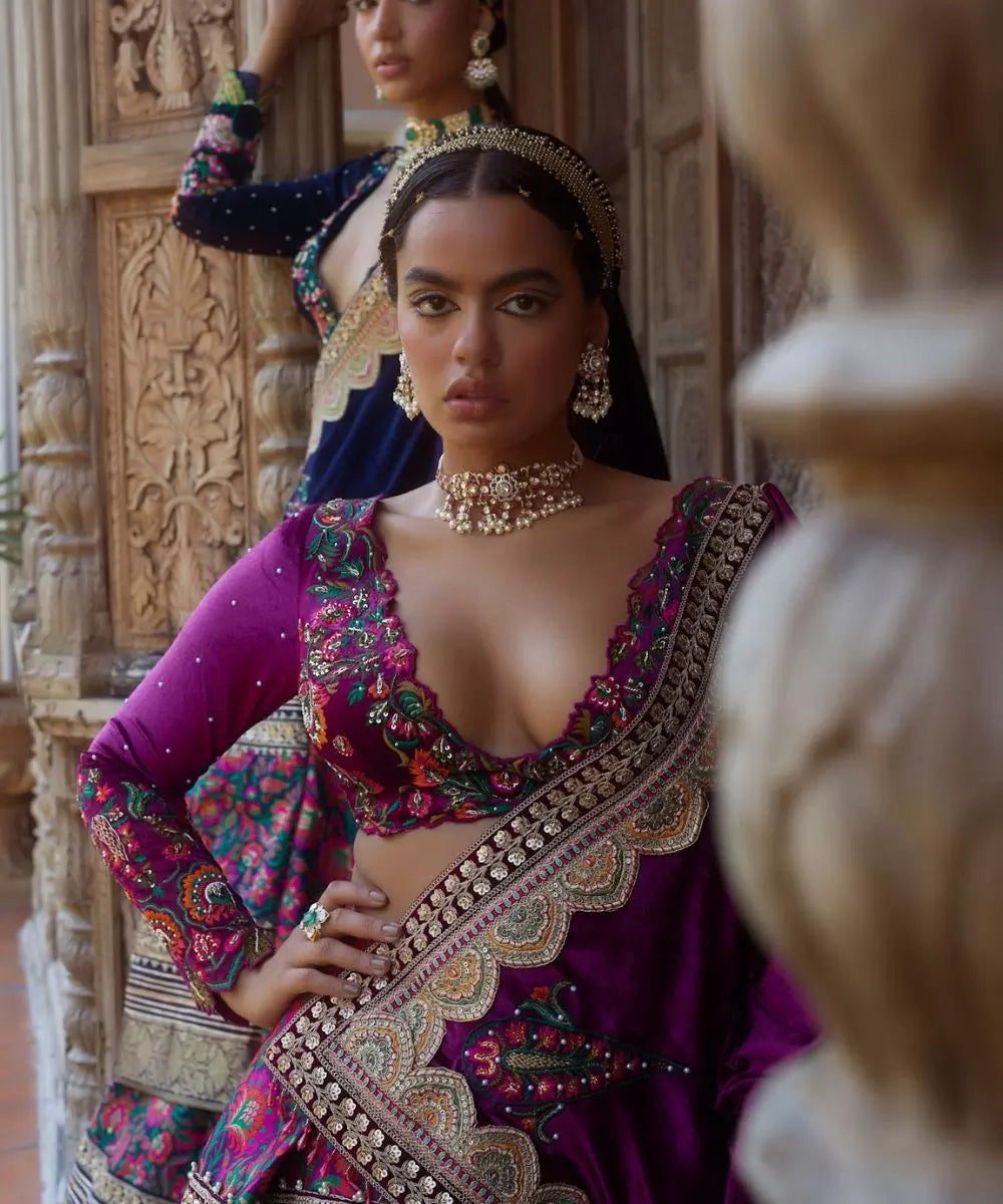 Fabric - Silk lehenga, velvet blouse, velvet dupatta