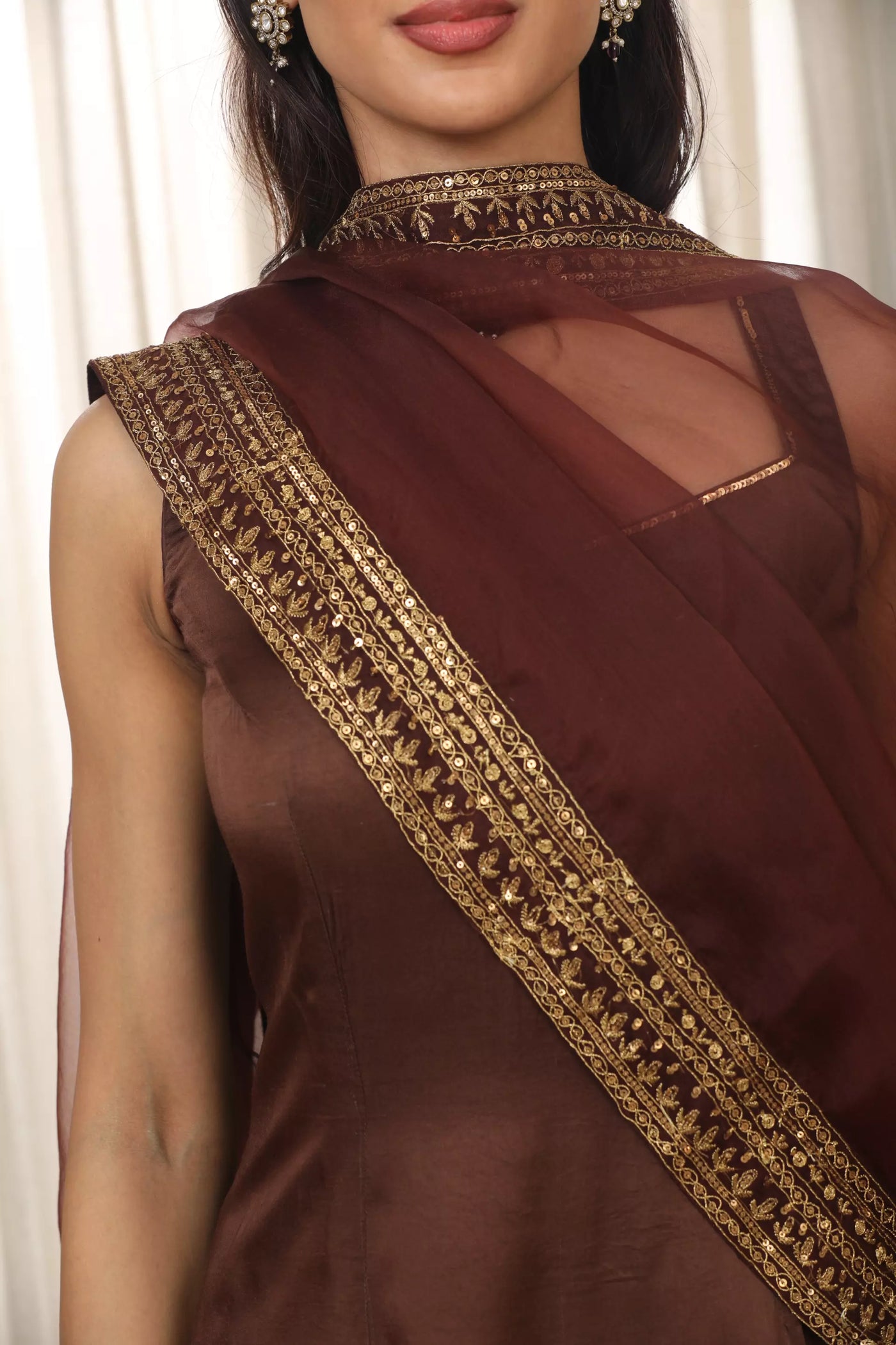 It contains with kurta embellished with handwork all over . It is paired with sharara and Embroidered dupatta.