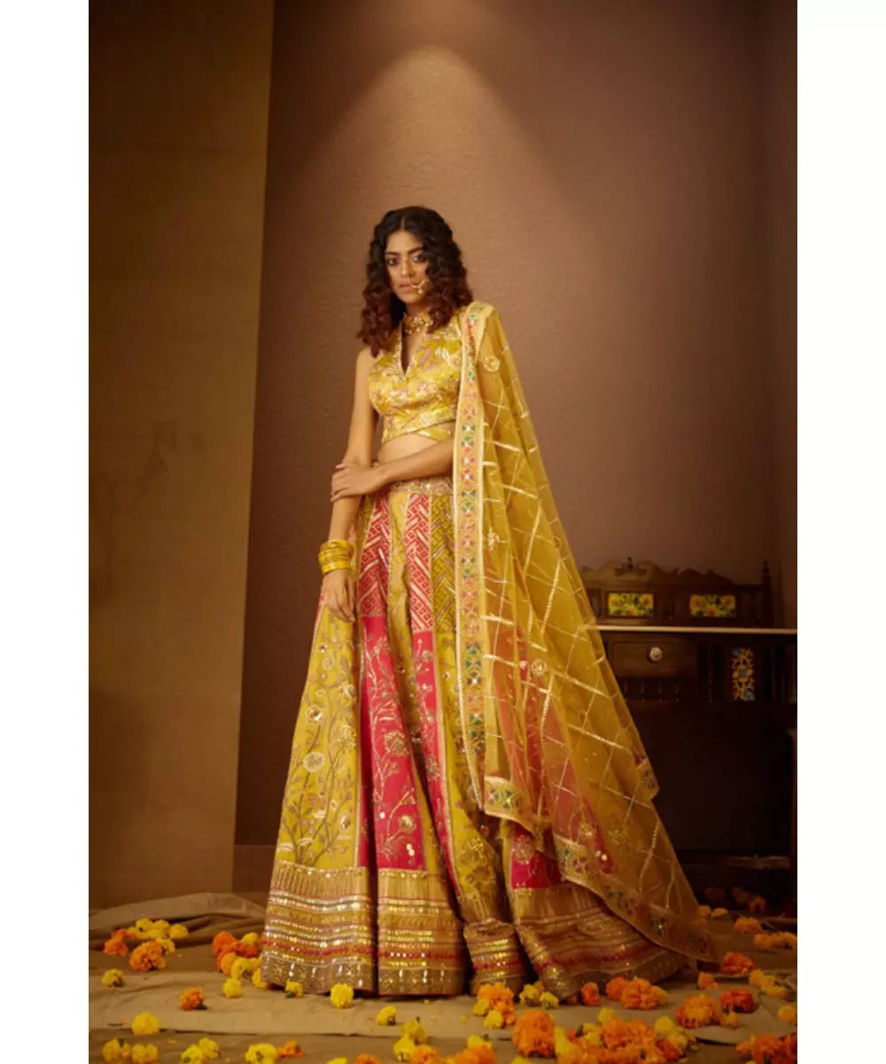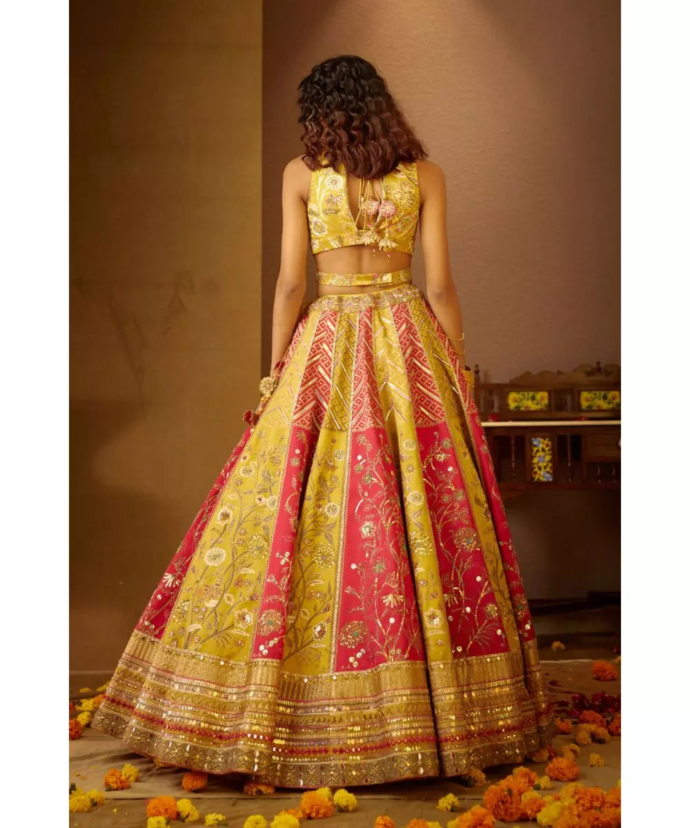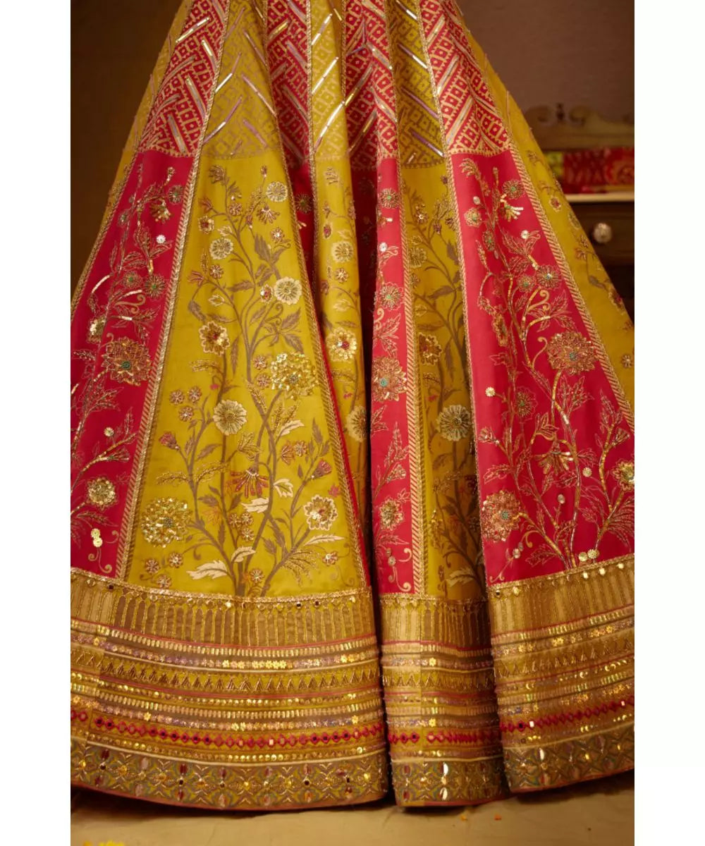MOLEDRO - Paakhi Lehenga Set Pink & yellow Kali Lehenga