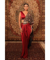 ADITI GUPTA - Red Jamawaar Draped Saree Skirt
