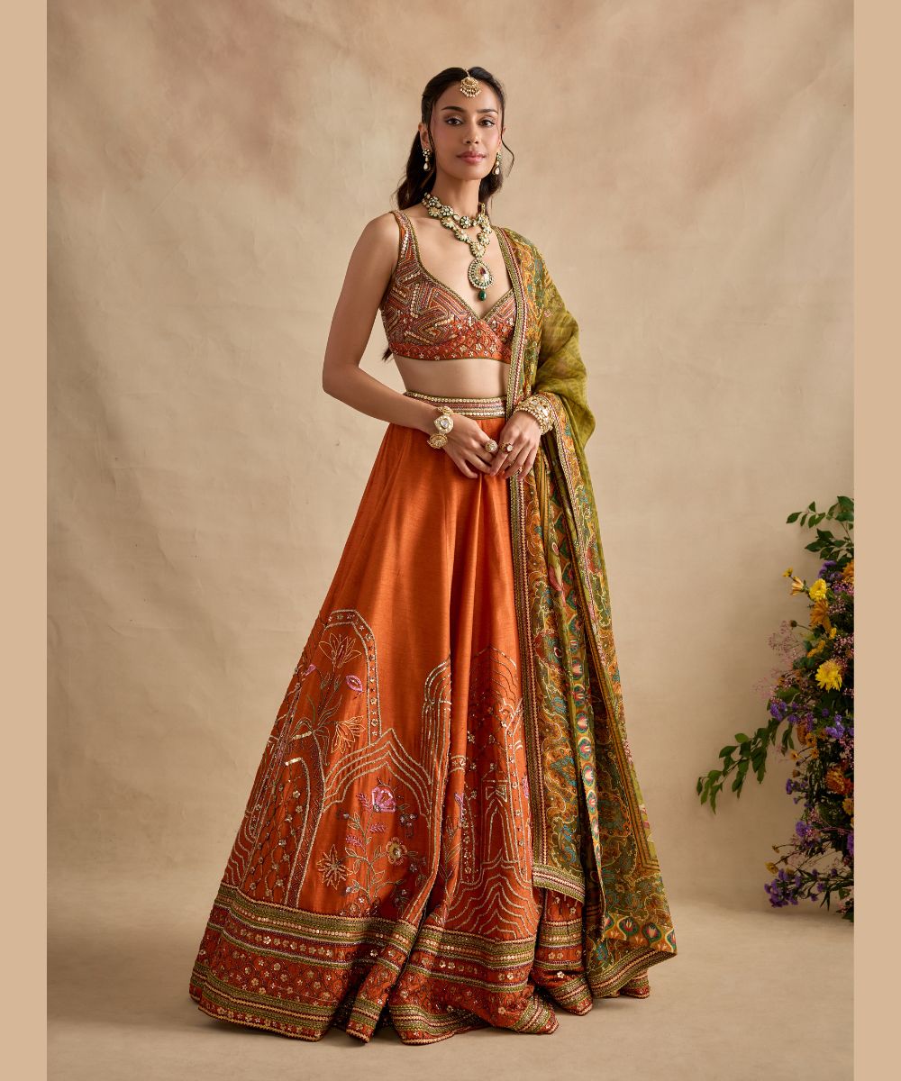 Color - BLOUSE / SKIRT - TANGERINE DUPATTA - OLIVE