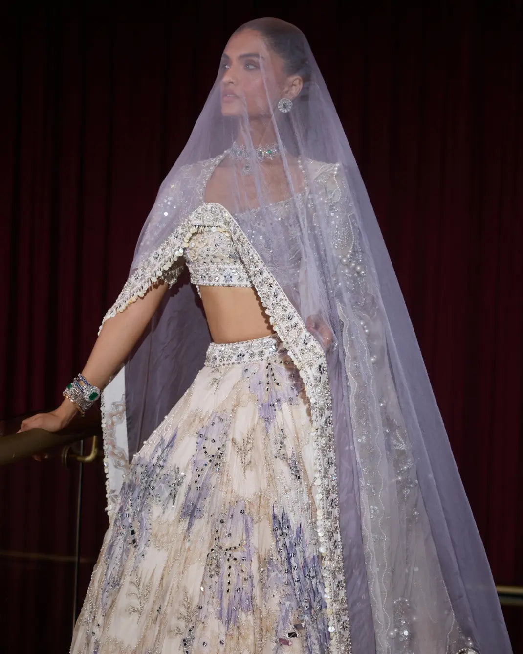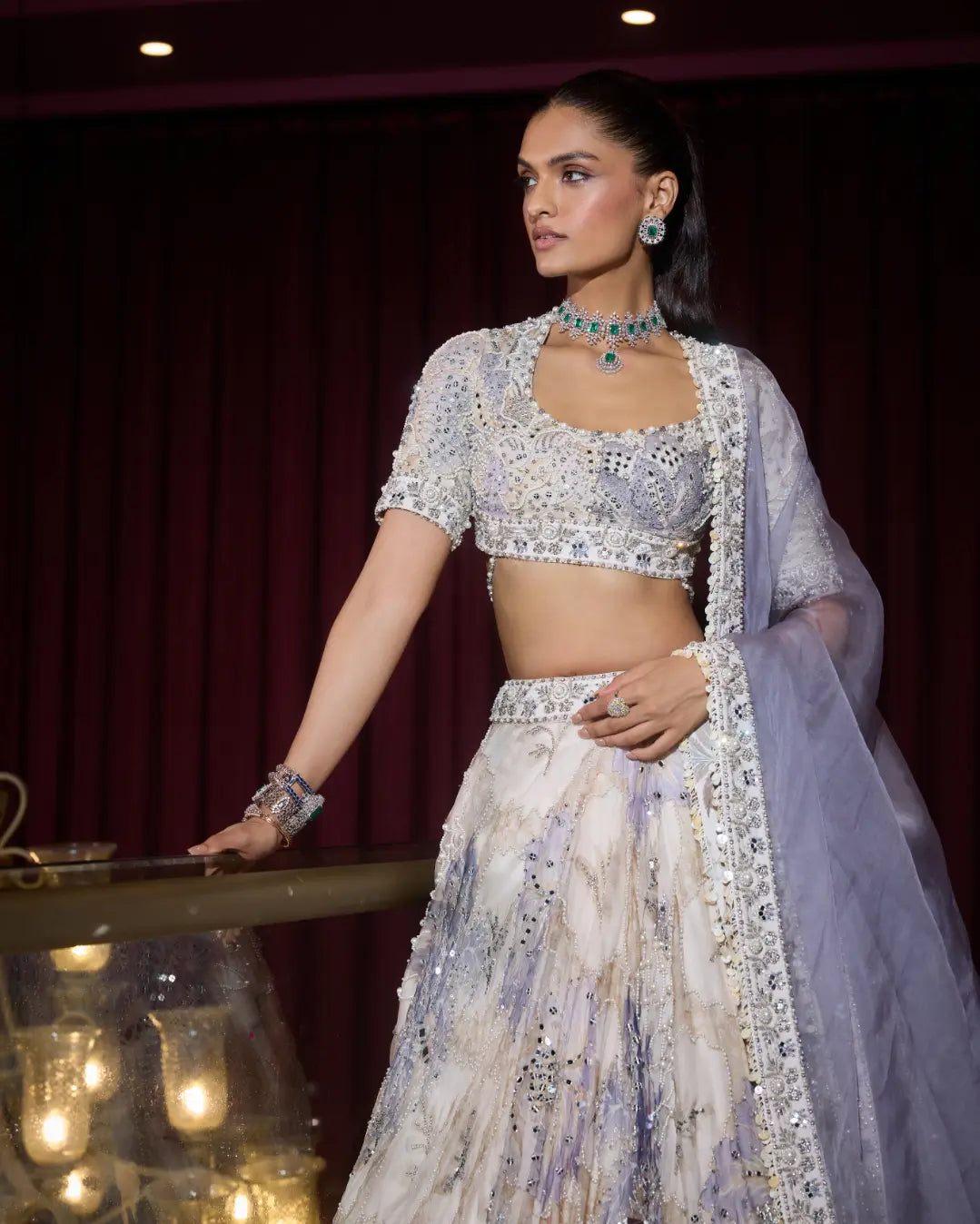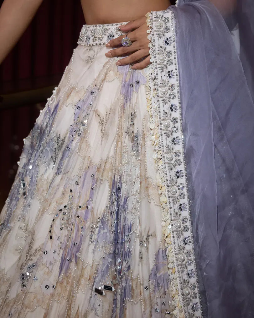 Heavy hand embroidered trail lehenga ,embroidered blouse and embellised border duppata