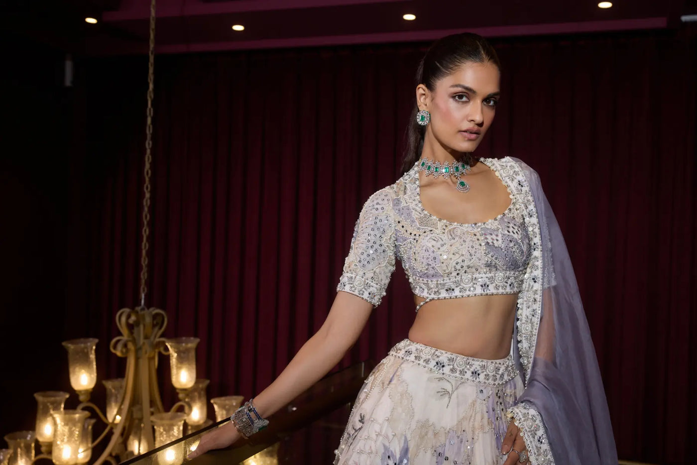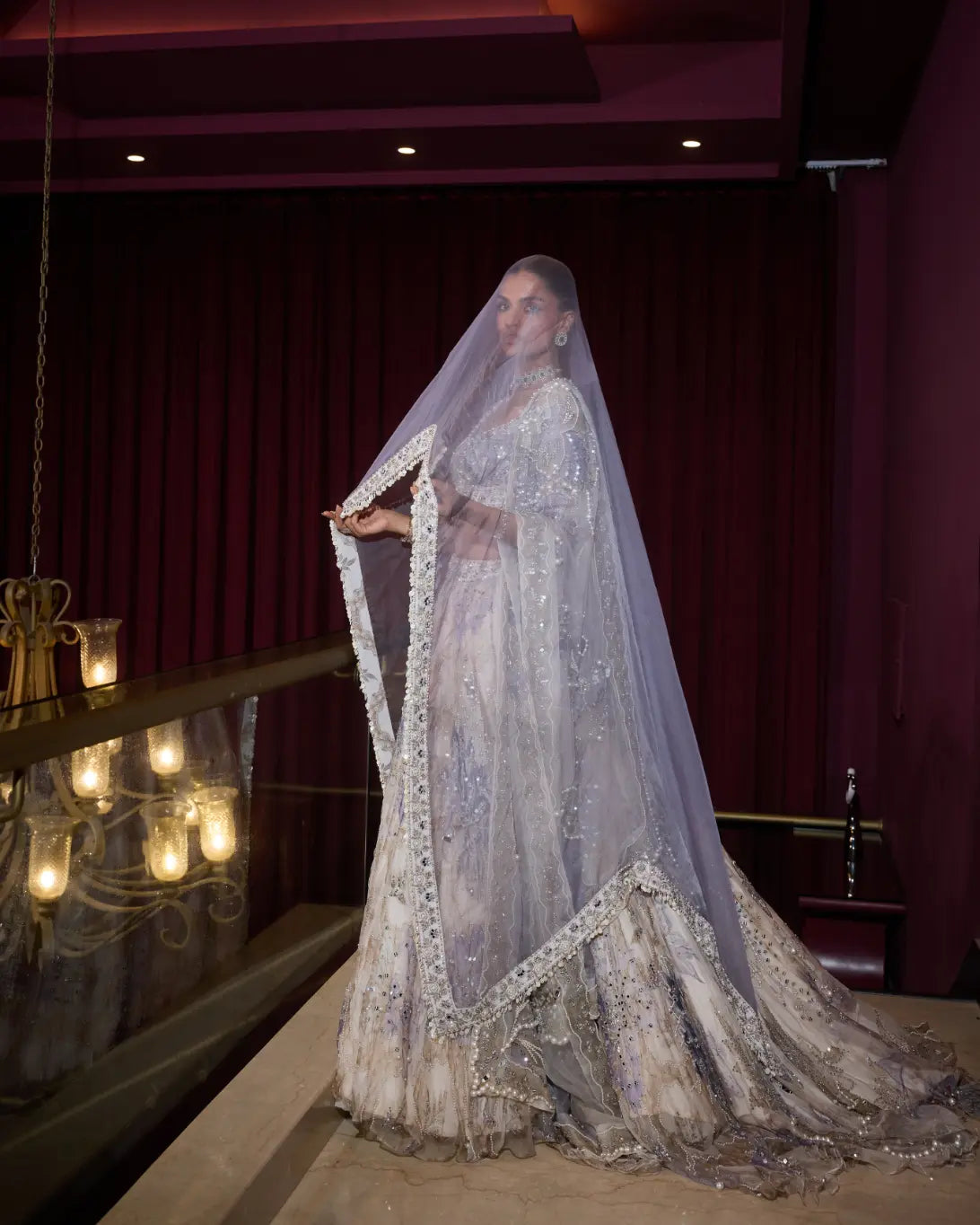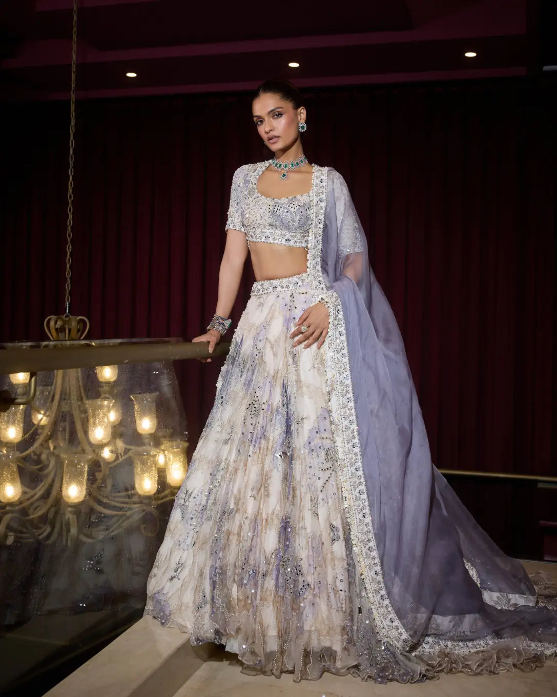 Heavy hand embroidered trail lehenga ,embroidered blouse and embellised border duppata