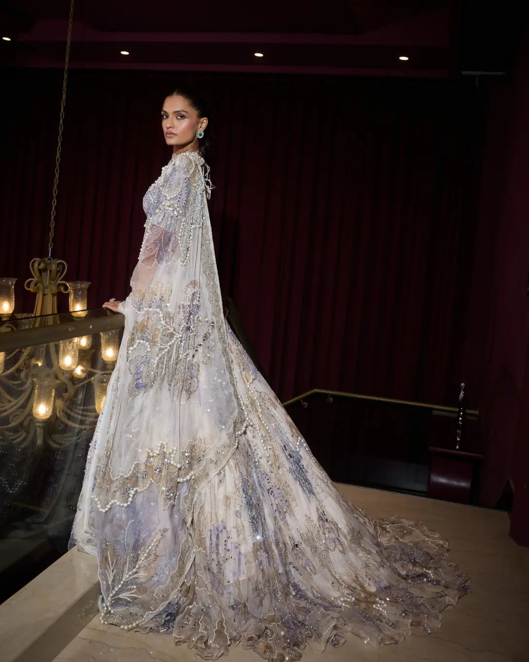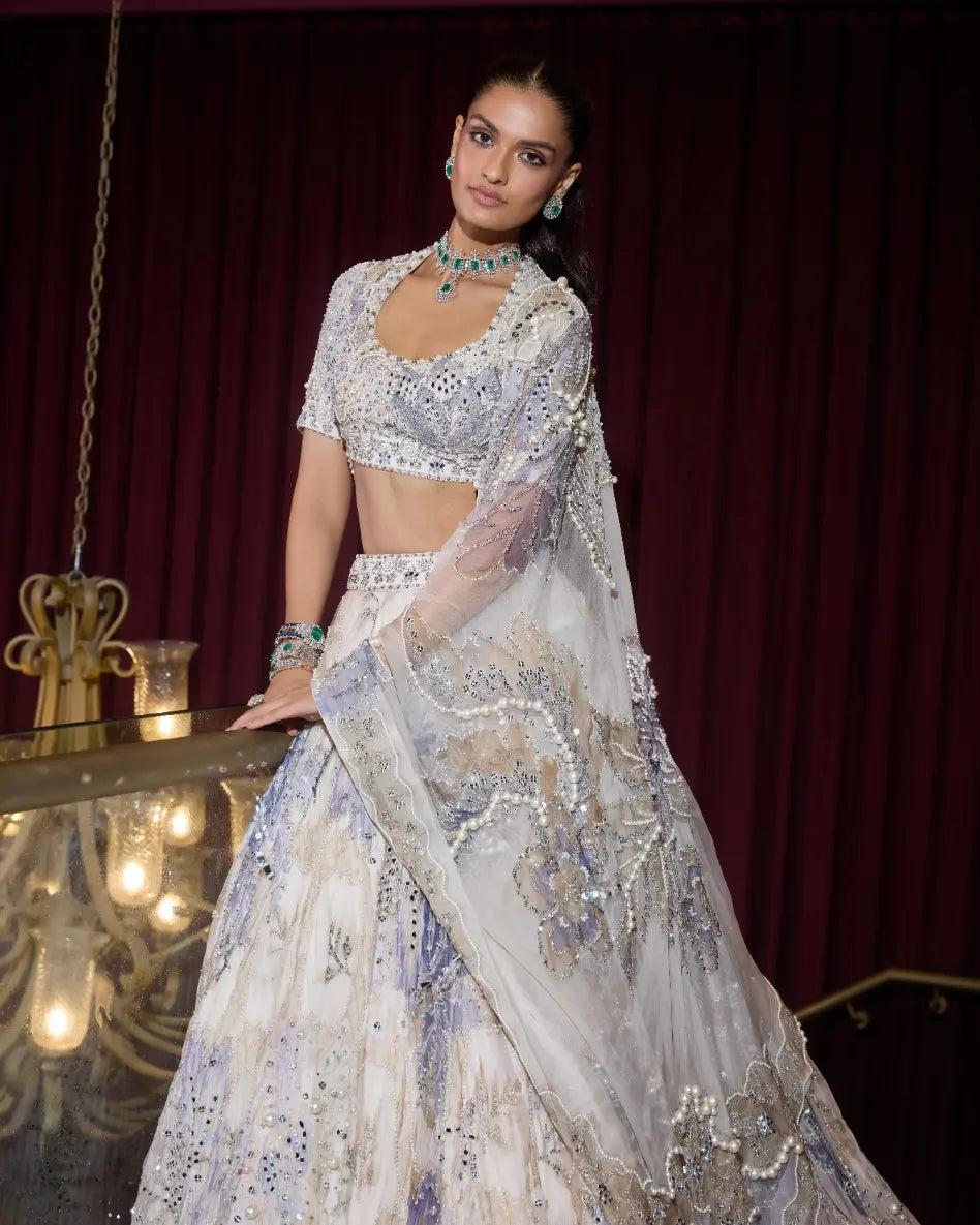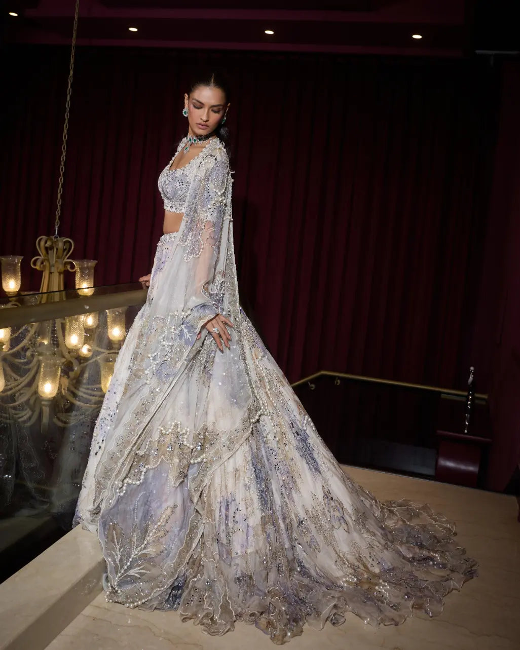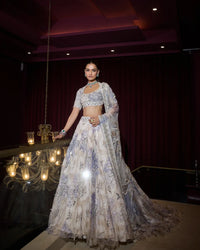 Heavy hand embroidered trail lehenga set with heavy odhani