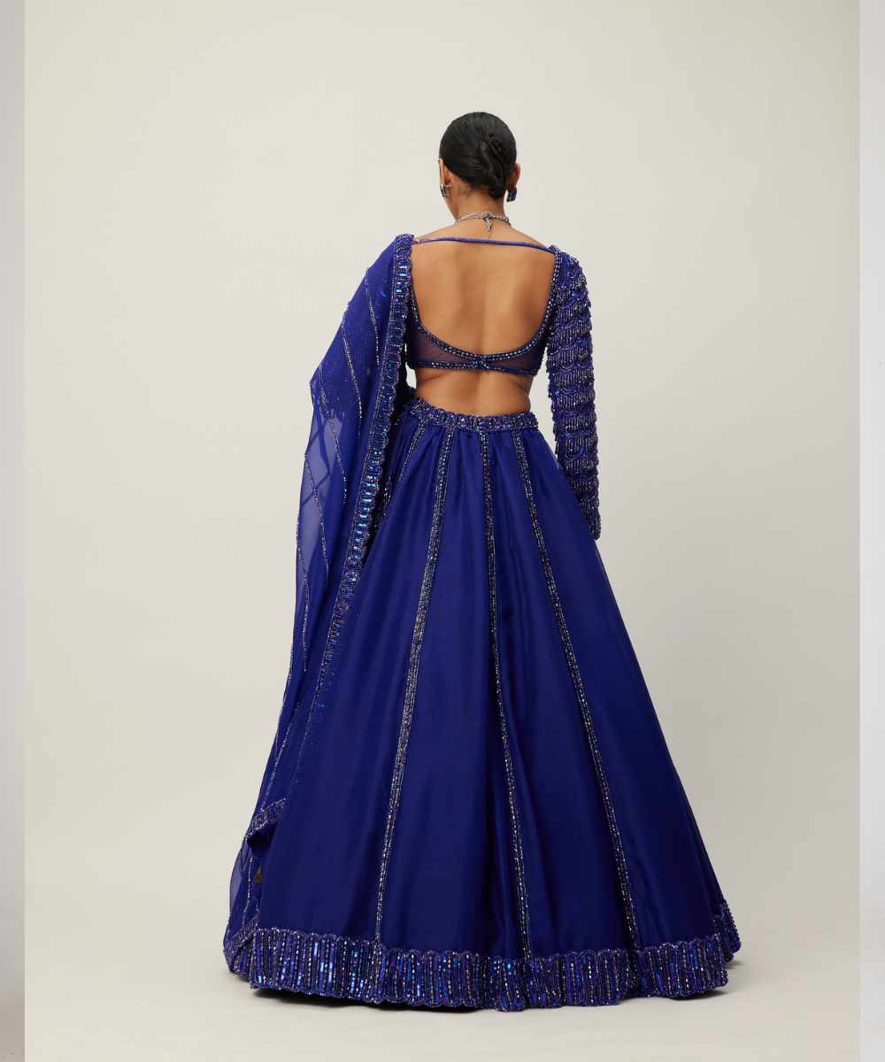 Cocktail Blue Organza Lehenga Set - Collection name Maya by Vvani Vats