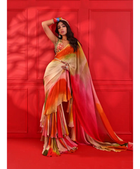 PRINTED FRILL SAREE SET