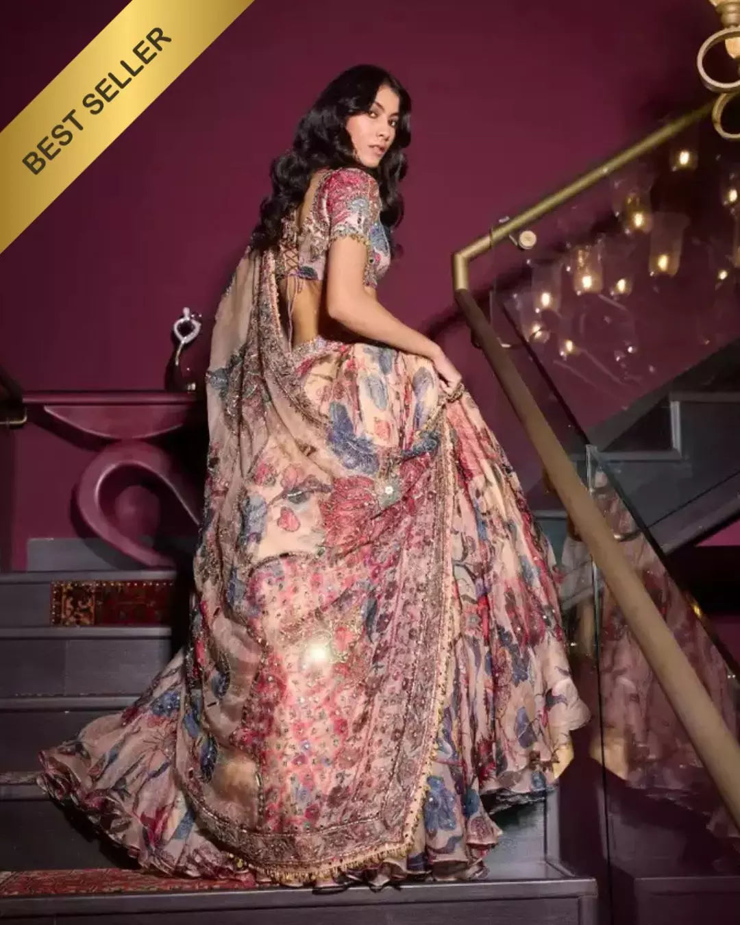 Hand embroidered lehenga featuring heavy odhanii