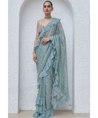 EMBROIDERED BLOUSE WITH EMBROIDERED RUFFLEDD PRE-STITCHED SAREE