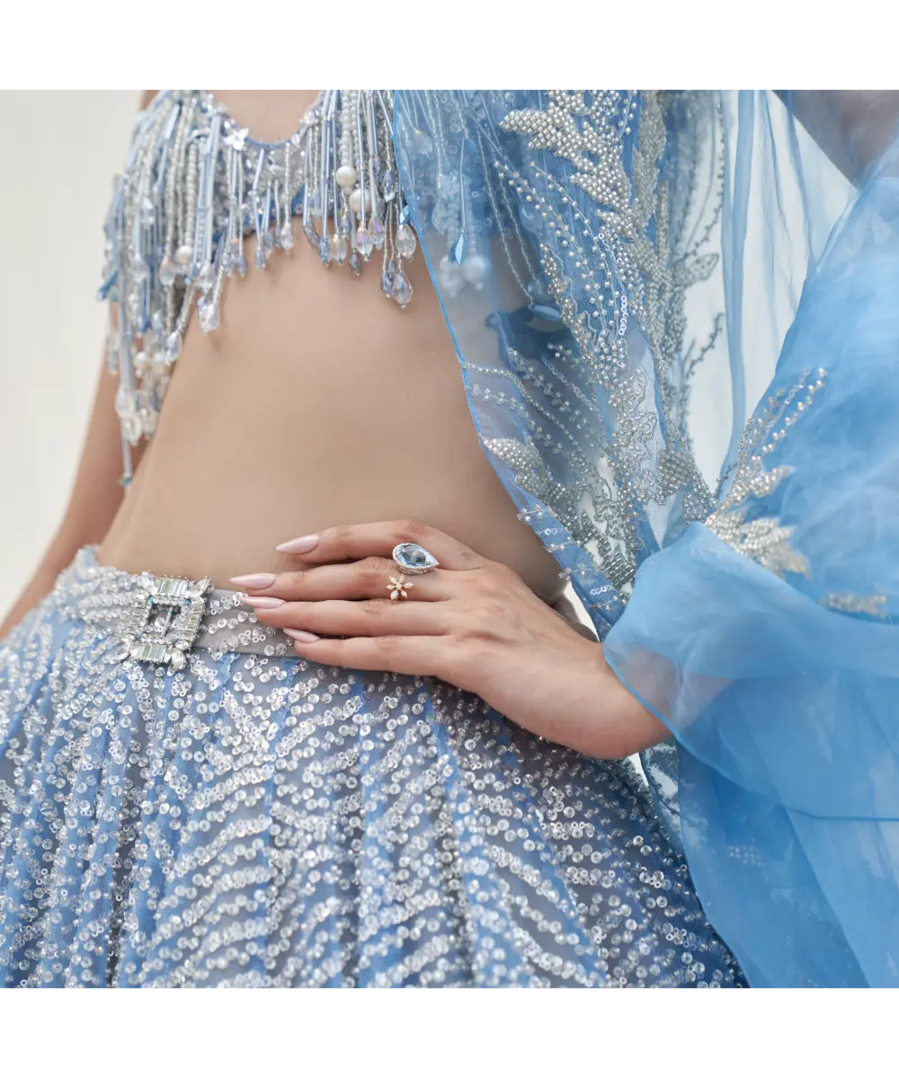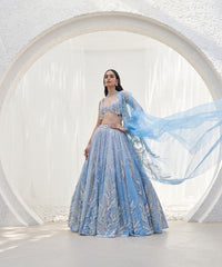 EMBROIDERED BLOUSE AND LEHENGA WITH EMBROIDERED ORGANZA DUPATTA