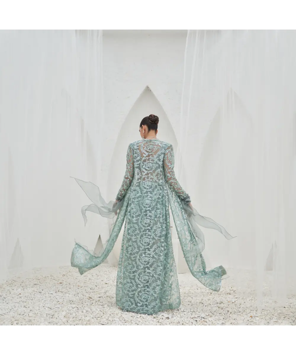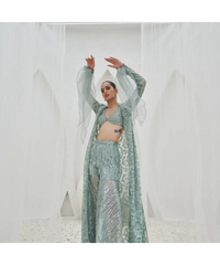EMBROIDERED BLOUSE WITH GHARARA AND FULL LENGTH JACKET