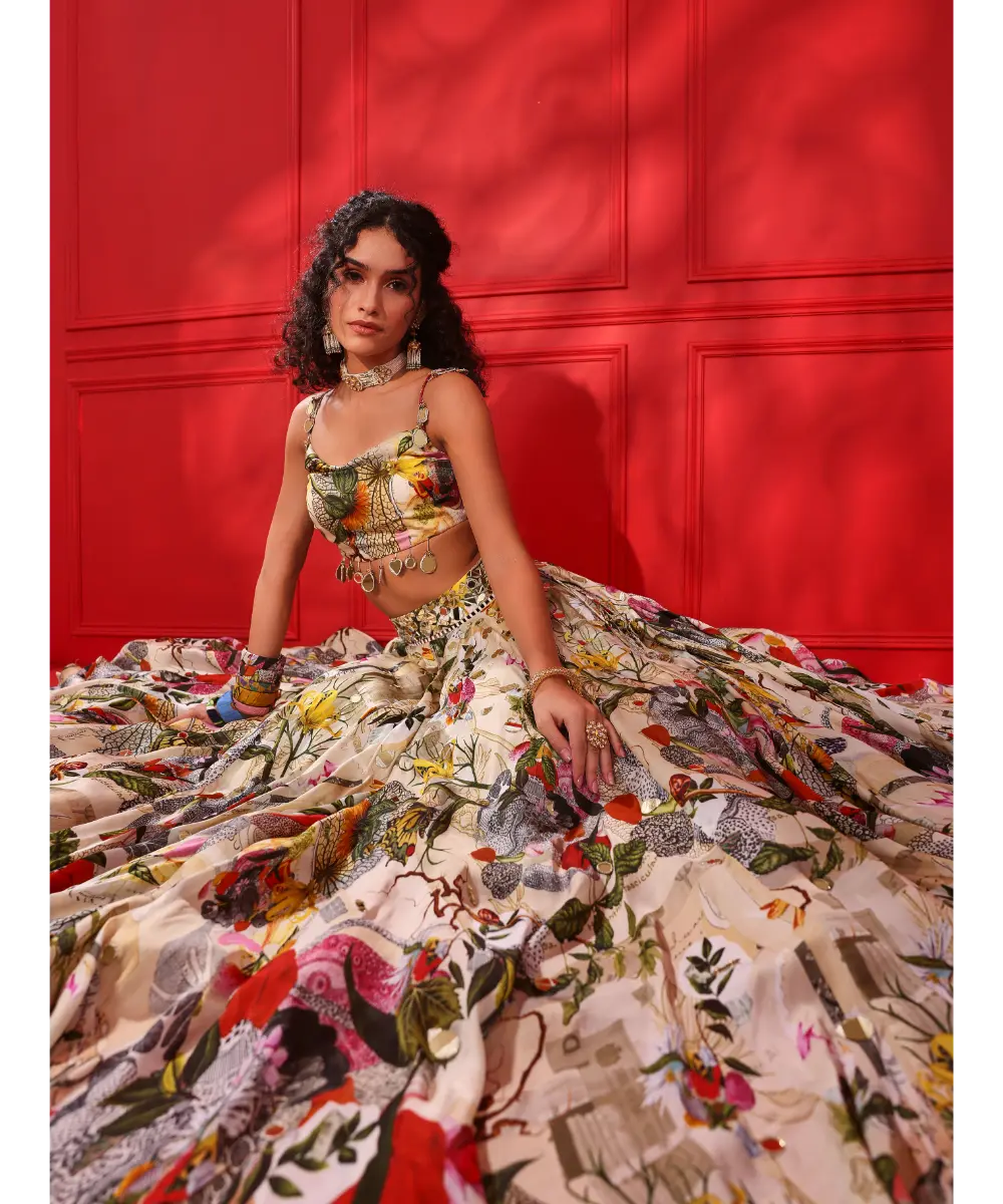 PRINTED COWL BLOUSE-LEHENGA SET