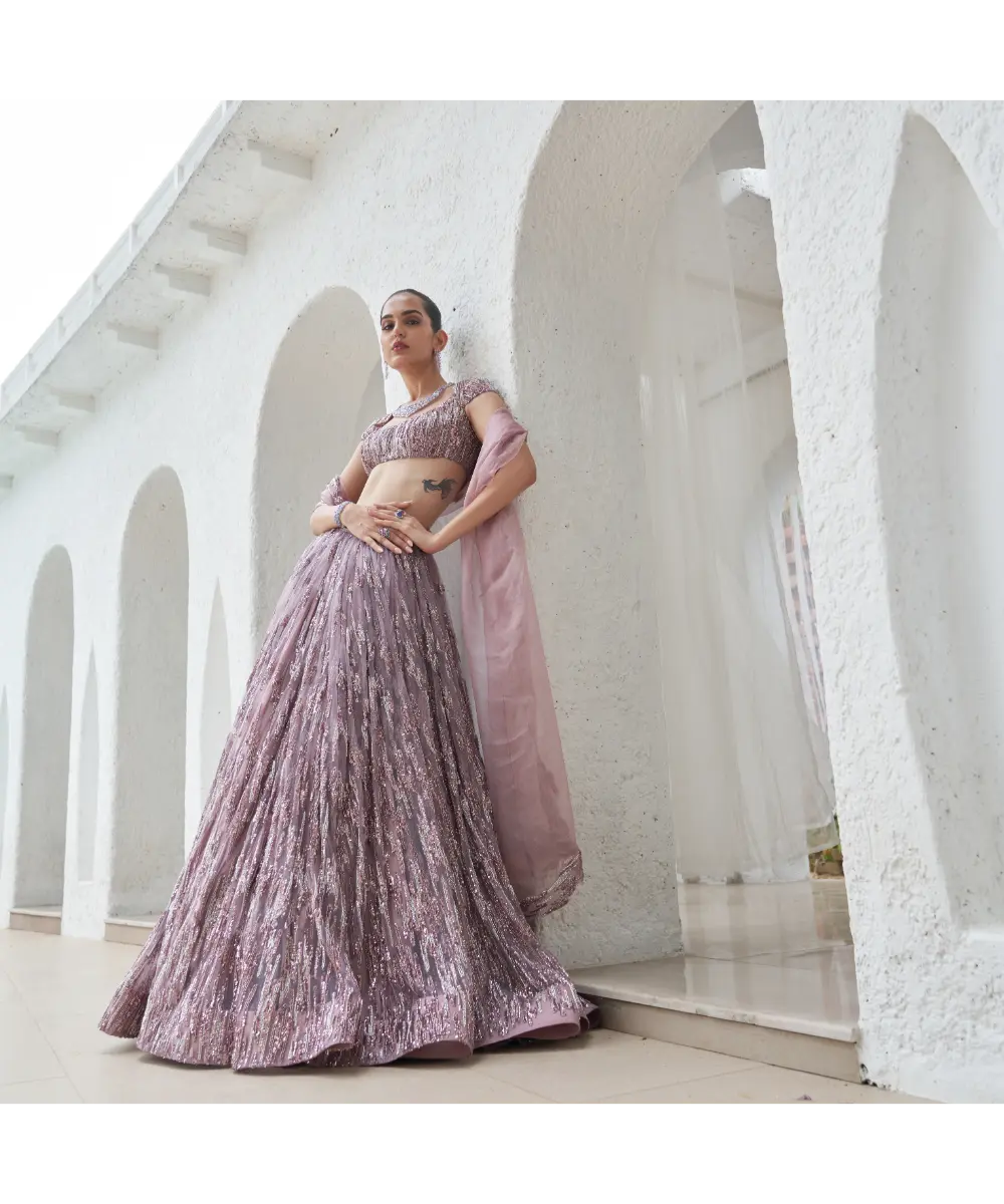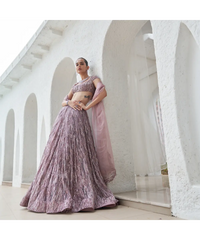 EMBROIDERED BLOUSE AND LEHENGA WITH EMBROIDERED ORGANZA DUPATTA
