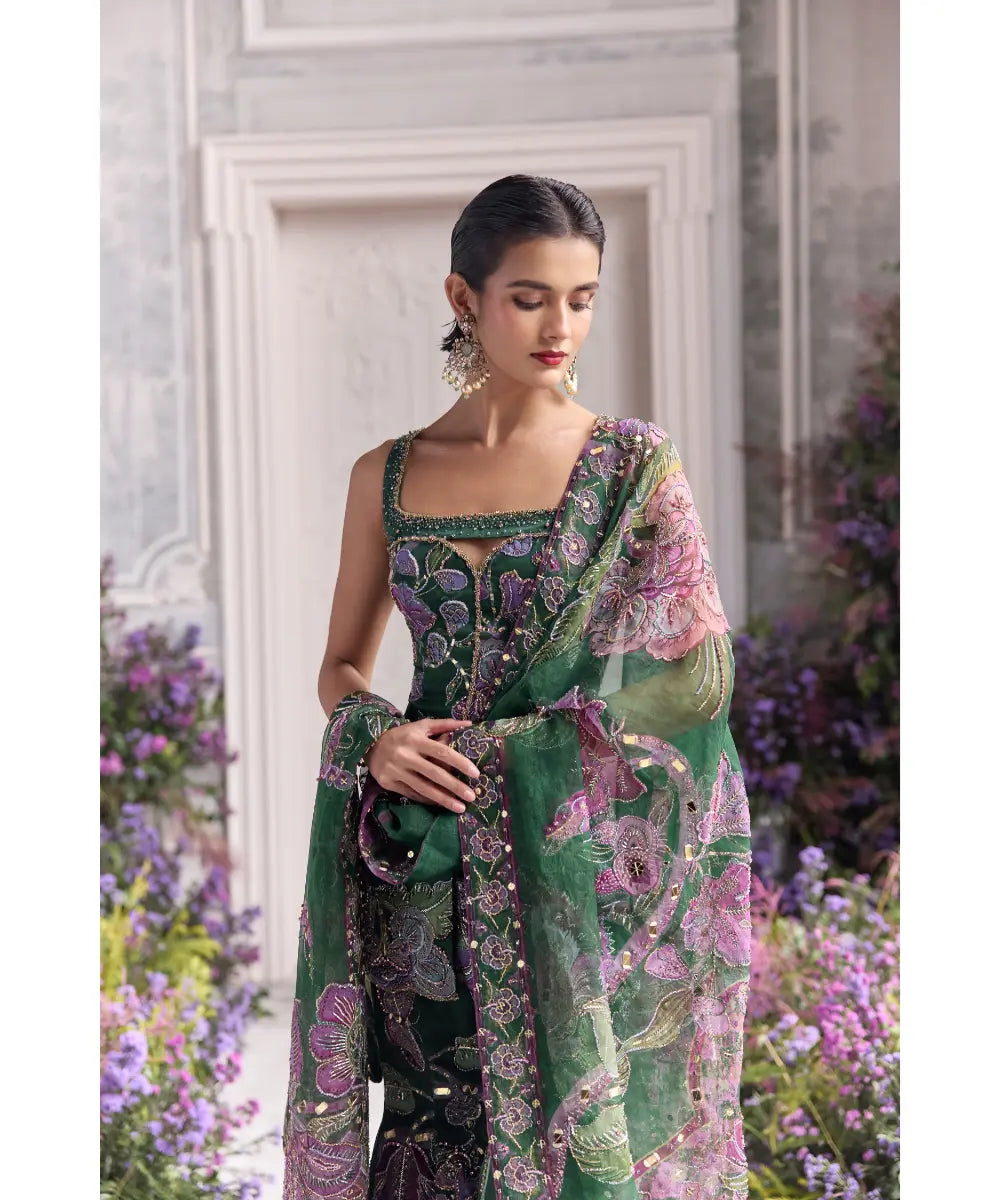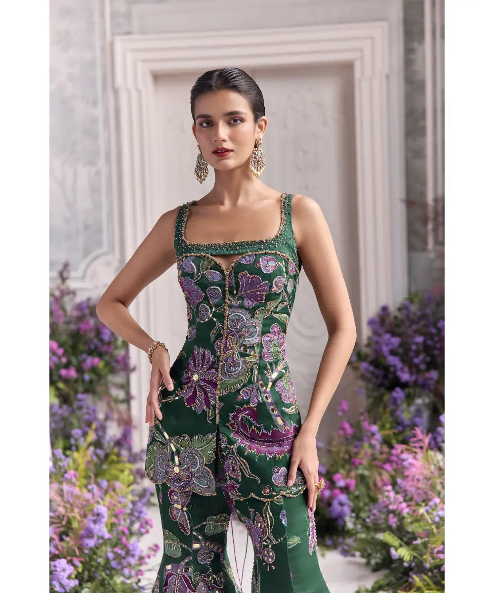 "HEAVY HAND EMBROIDERED SHORT  KURTA PAIRED WITH EMBROIDERED  SHARARA AND DUPATTA"