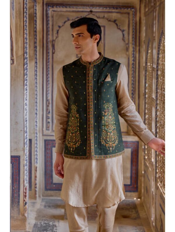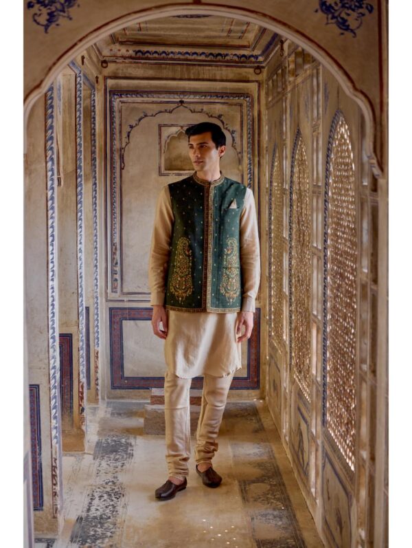 Color– BANDI – BOTTLE GREEN KURTA – BEIGE CHURIDAR – BEIGE