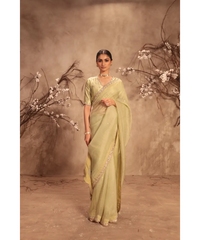 NITI BHOTRA - Nazakat Light Green Organza Mirror Work Saree Set
