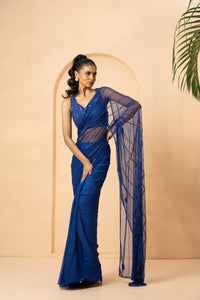 Featuring an blue pre-stitched, drape saree, with intricate self on self work on blouse and pallu of the saree. The saree is made up of Georgette and Net.
