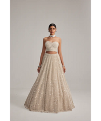 VVANI VATS- Light Beige mirror and pearl Corset lehenga set With Stole - XS