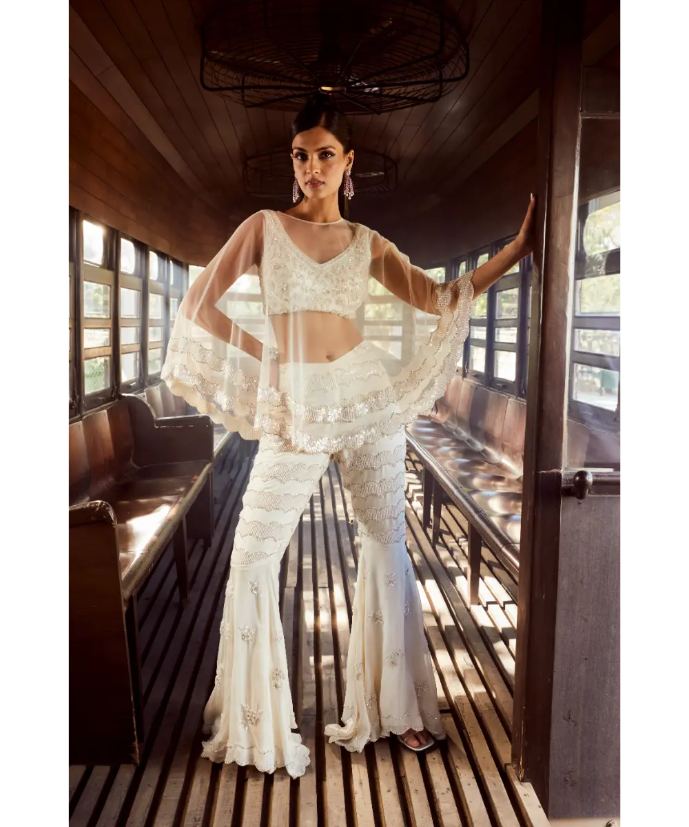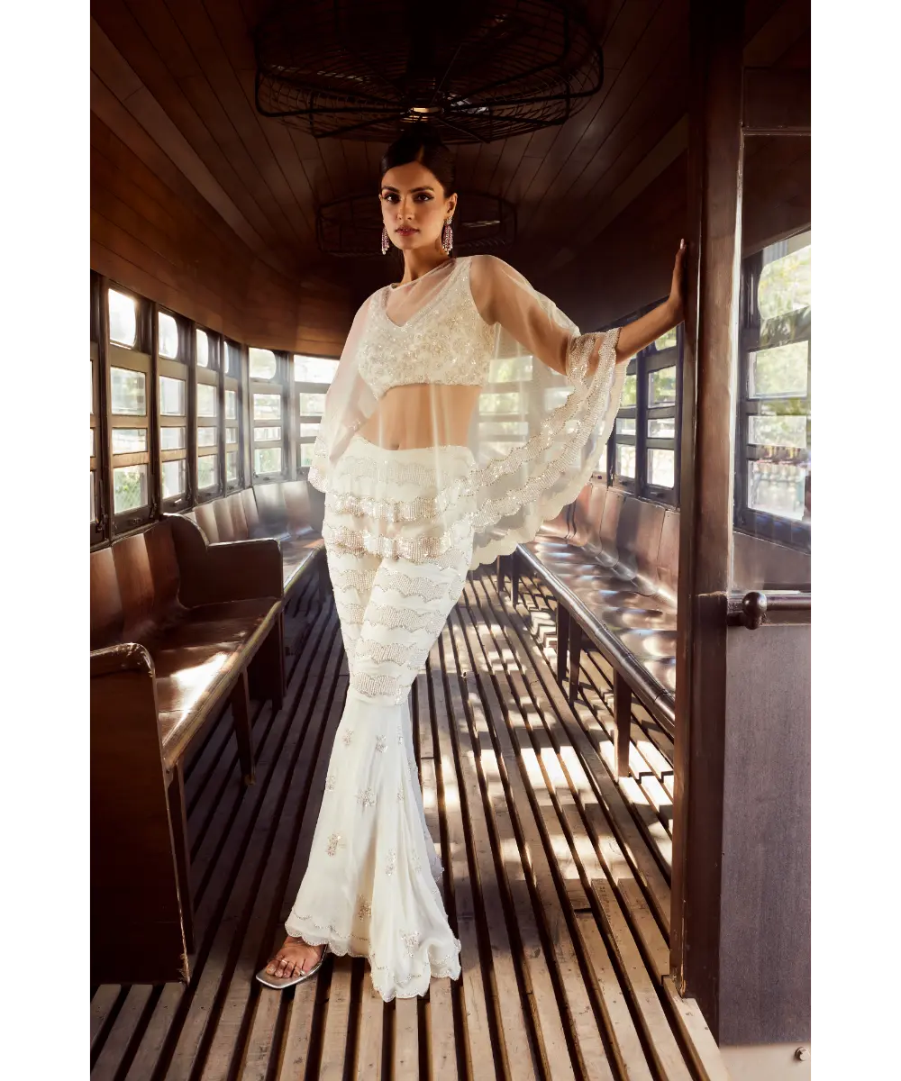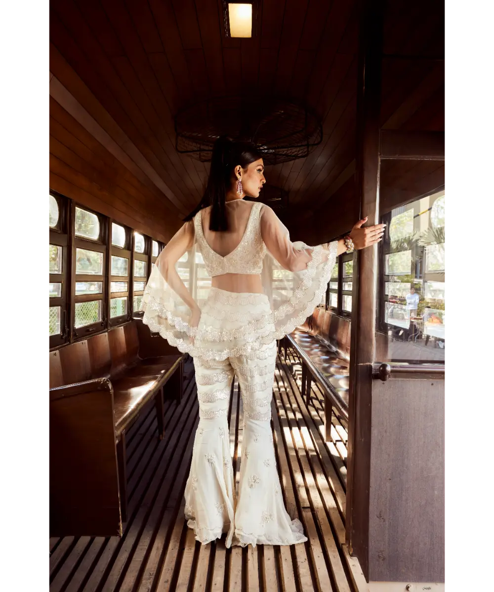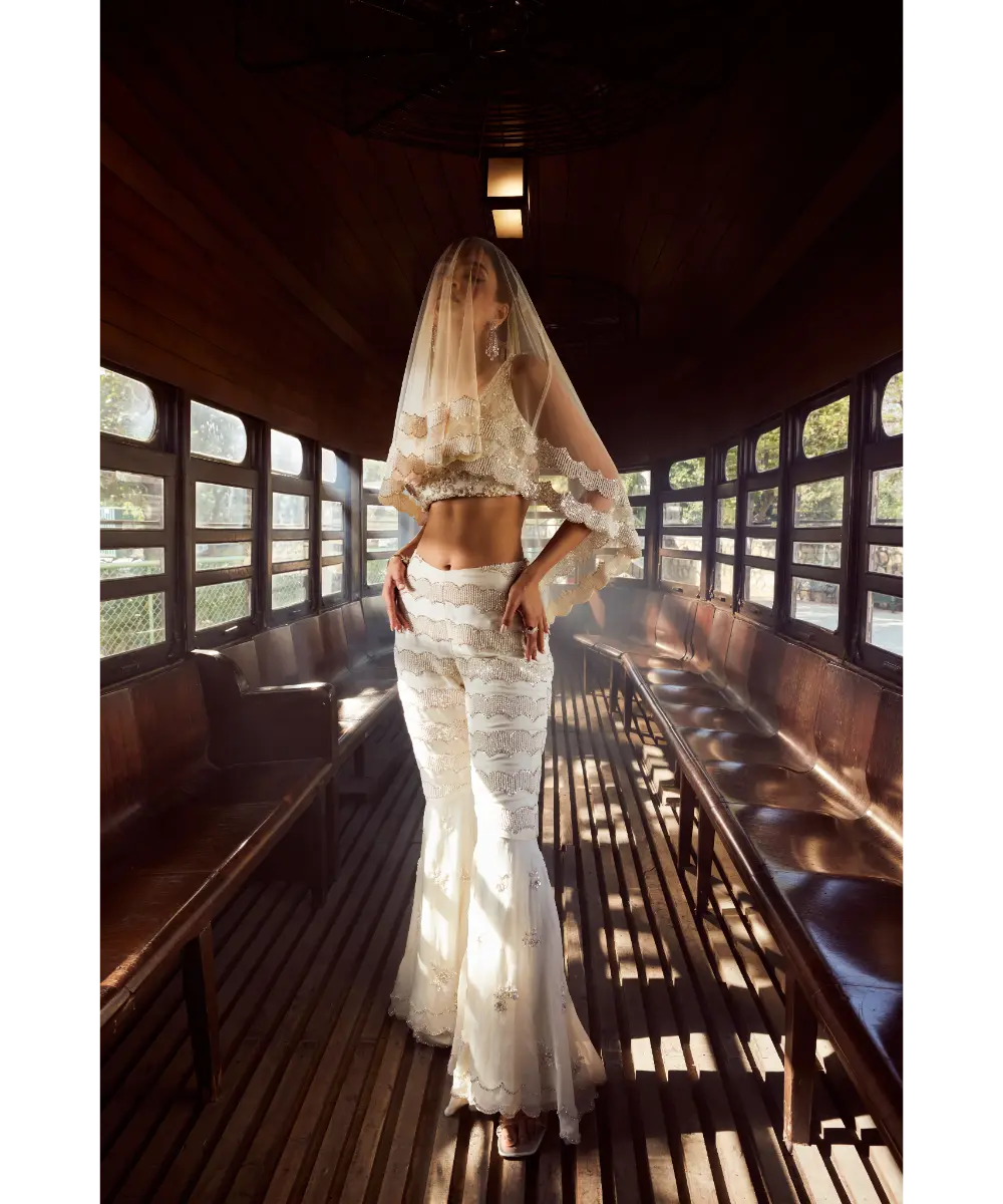 Embellished with intricate sequins and pearl work