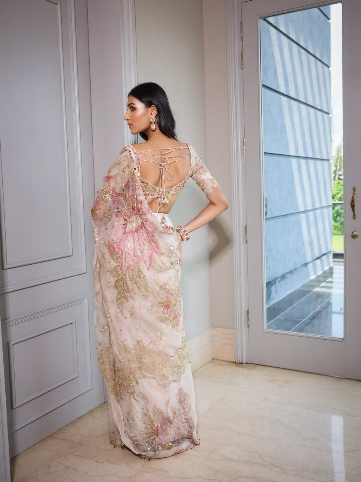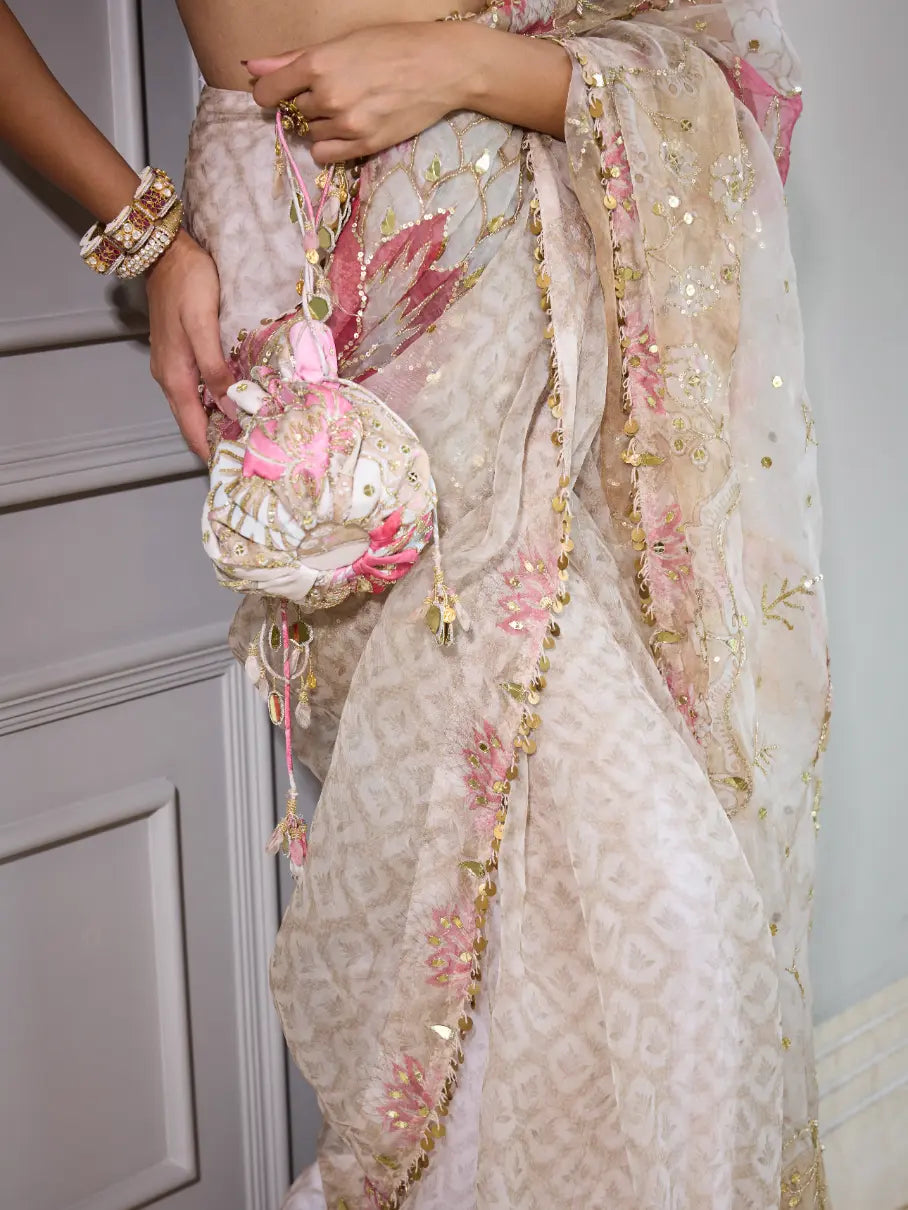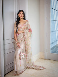 Predraped hand embroidered saree with blouse
