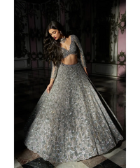 SEEMA GUJRAL- Silver Abstract Lehenga Set - XS