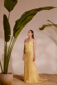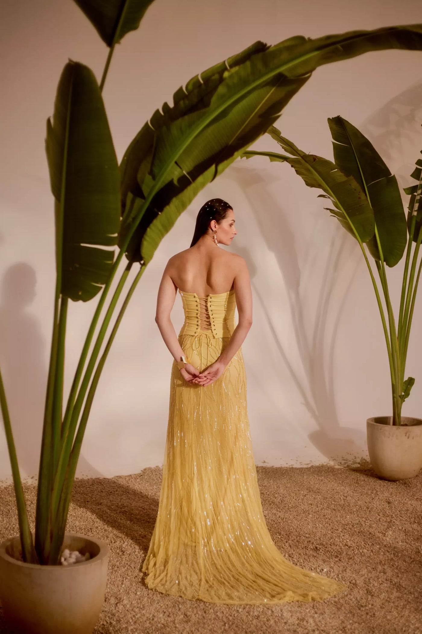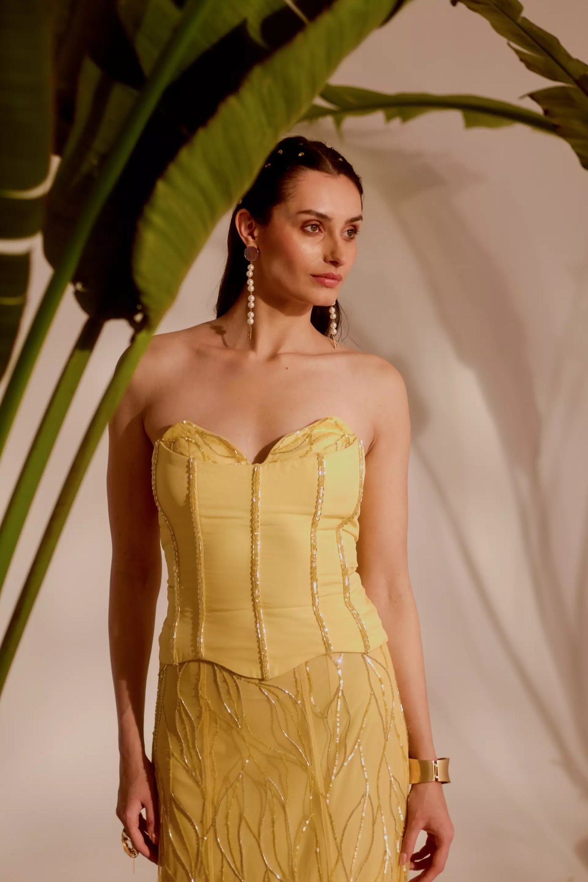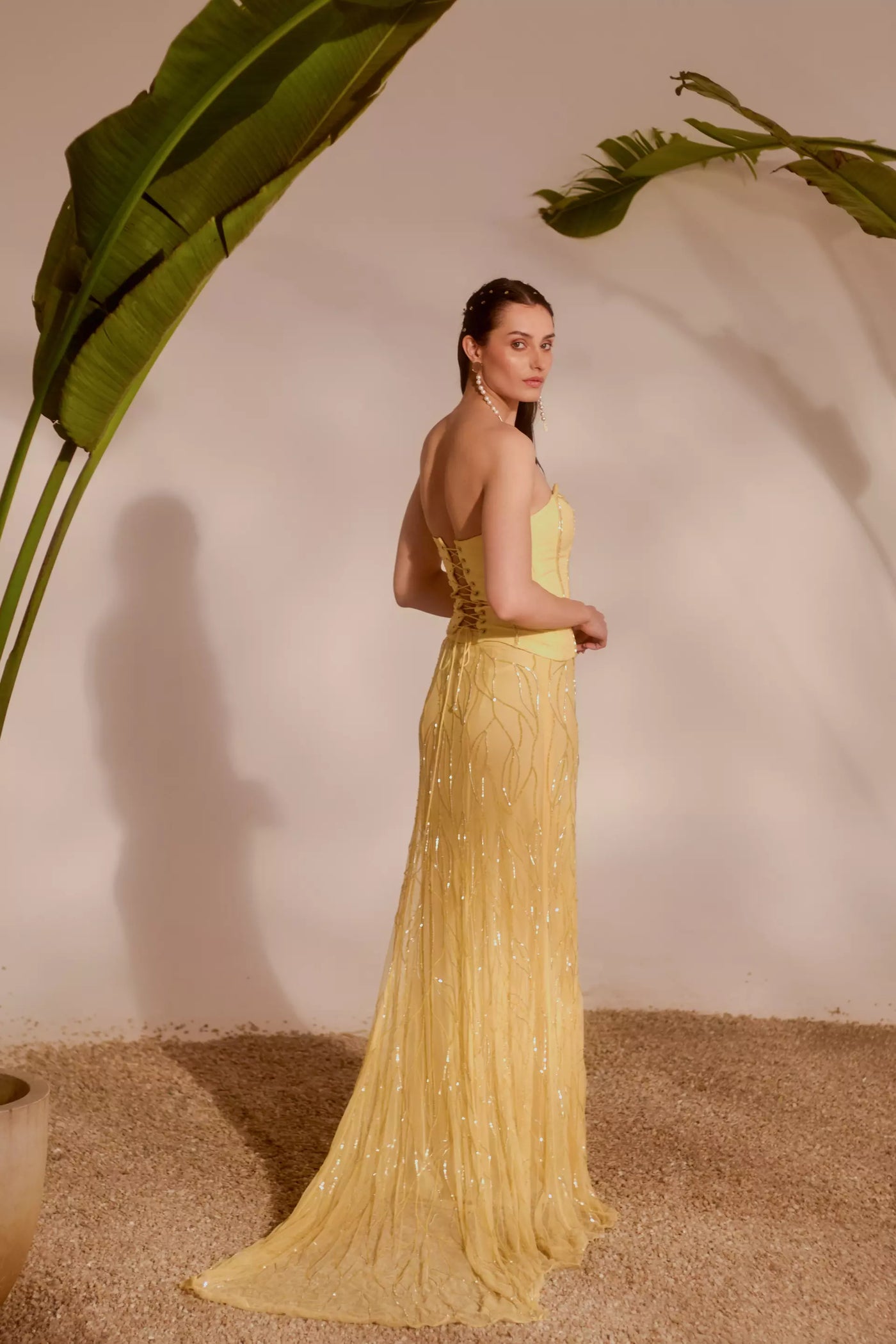 CORSET WITH EMBROIDERED A-LINE TRAIL SKIRT- CORSET WITH EMBROIDERED A-LINE TRAIL SKIRT
