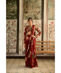 DIYARAJVVIR - Red Floral Printed Skirt Saree Set - XS