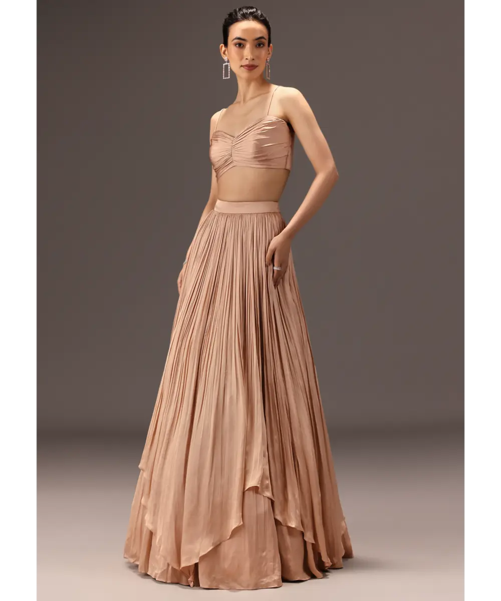 KALKI - Nude Ruched Blouse With Cape And Layered Skirt - XS