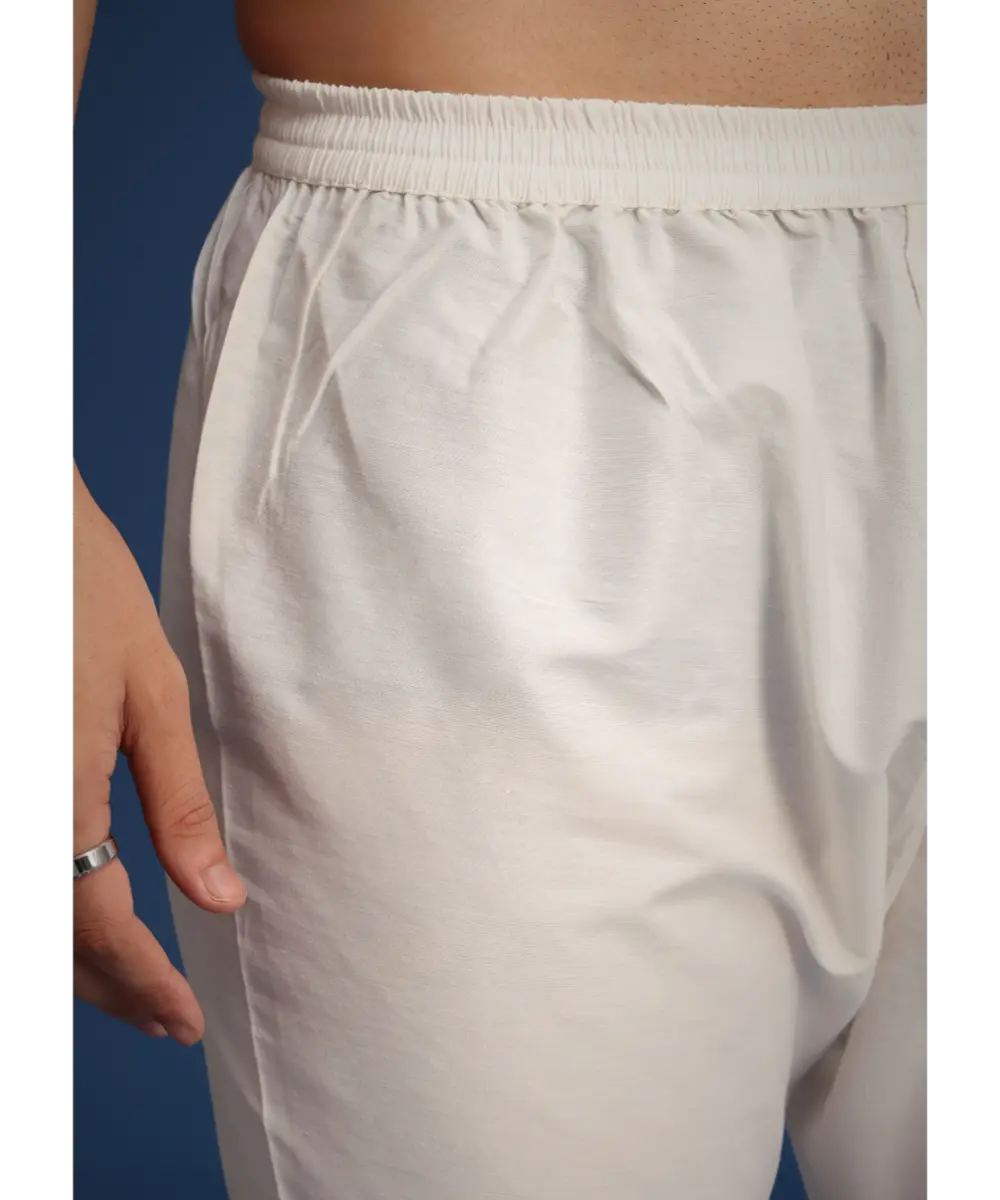A resplendent style that exudes sophistication and elegance is this white silk sherwani set. It features with exquisite embroidery, decked with salli, pearl and cutdana work. The sherwani is designed with a mandarin collar and full sleeves offering a comfortable look. Completed with a kurta, churidar, dupatta, kamarbandh and a mala, this regal ensemble showcases your refined style. Awarded as the Most Trusted Brand, we're delivering styles you love, just as promised.