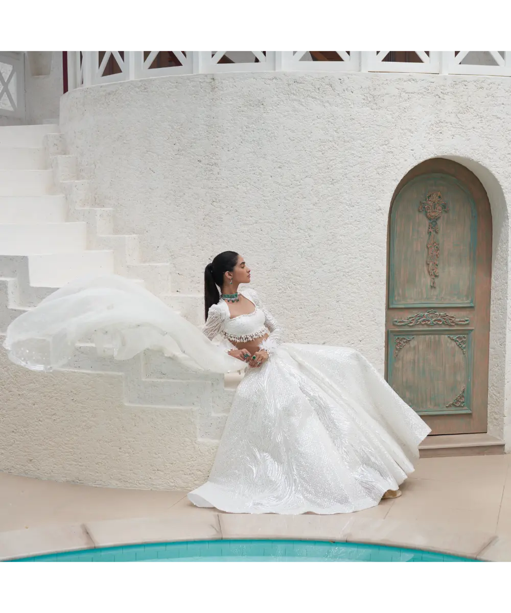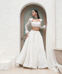 EMBROIDERED BLOUSE AND LEHENGA WITH EMBROIDERED ORGANZA DUPATTA
