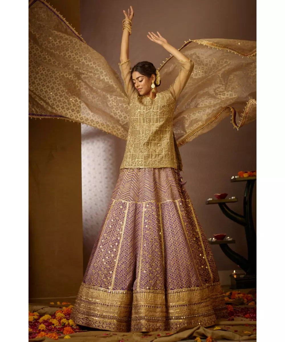 MOLEDRO - Sumeira Lehenga Set Purple Lehenga with Mouse Grey Kurta - XS