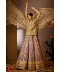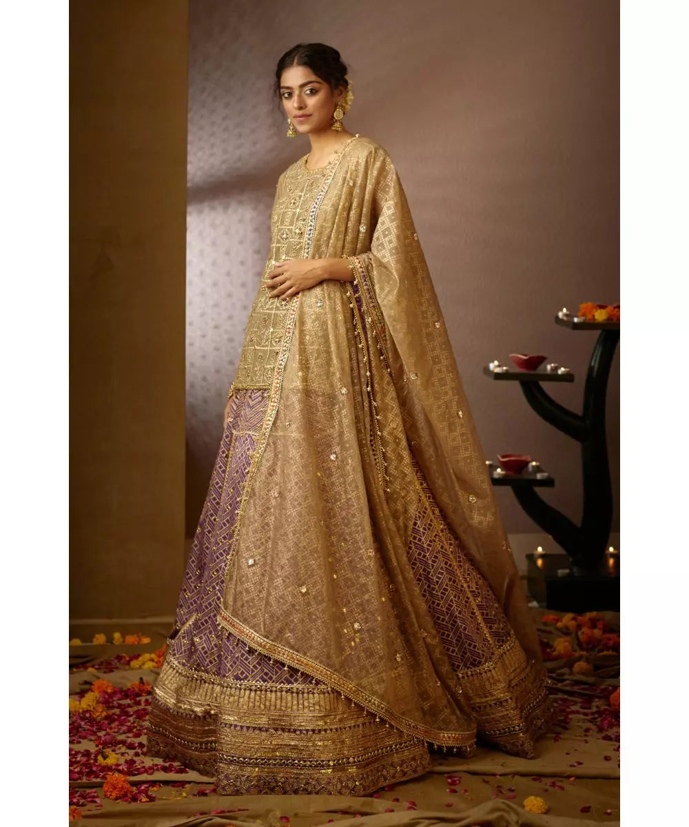 MOLEDRO - Sumeira Lehenga Set Purple Lehenga with Mouse Grey Kurta
