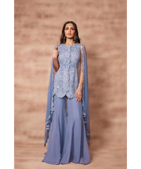 PRITIKA VORA - Periwinkle hand embroidered Sharara set - XS